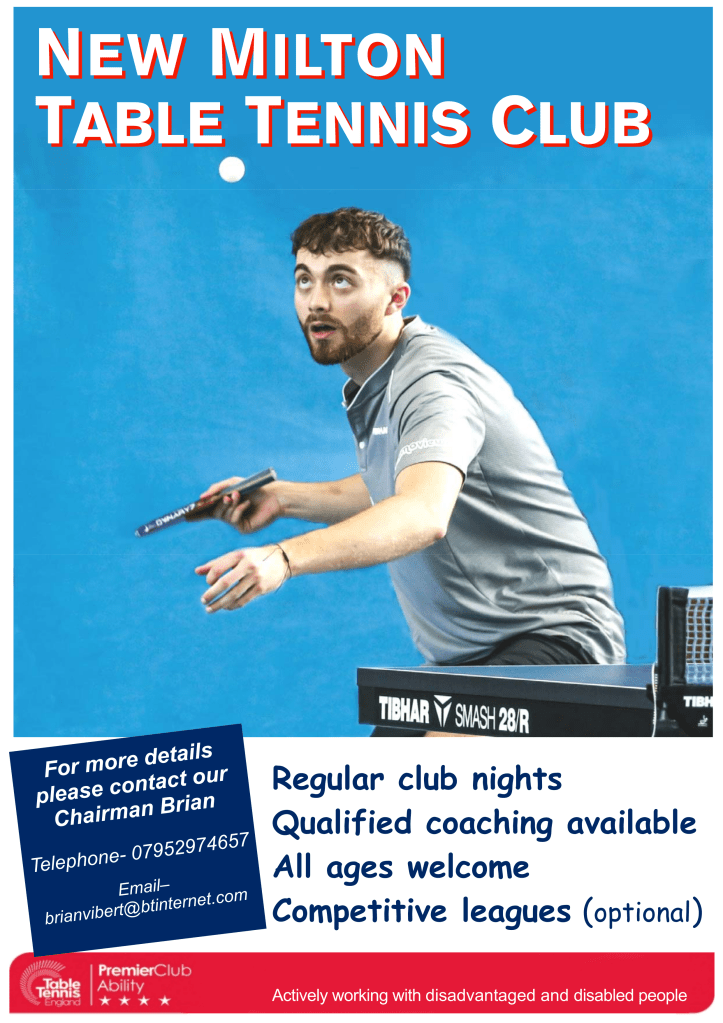 As Co-Development Officer for New Milton Table Tennis Club, Matthew is proud to introduce NMTTC. The first Open Practice session is free, so why not give it a try!